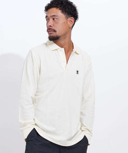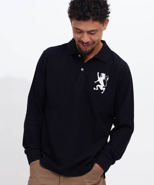 ビッグライオン刺繍ドライストレッチ長袖ポロシャツ