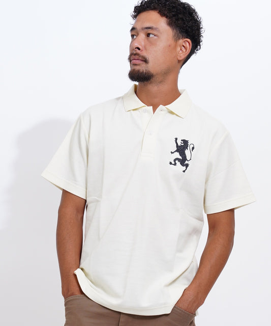 ビッグライオン刺繍ドライストレッチ半袖ポロシャツ