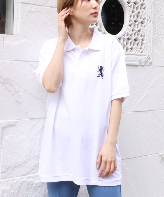 ライオン刺繍 襟デザインUVカットポロシャツ(男女兼用)